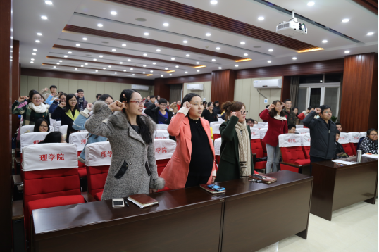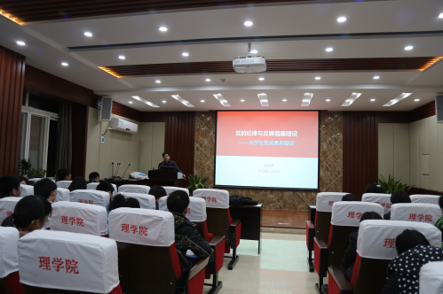 12月4日晚,理学院在逸夫楼一楼报告厅举行特殊党课之“党员宣誓仪式暨主题教育活动”,理学院第68期党课全体学员、本学期转正的党员及学生代表等参加了活动。