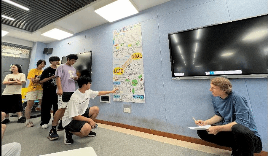 在授课模式上,本期课程延续了去年成功的分组讨论与固定分组考核机制,这一策略显著提升了学生的即时学习响应能力与课堂参与度。课程期间,在外教的不断鼓励下,学生们积极参与分组研讨,围绕科学问题展开热烈讨论。他们结合课堂所学和拓展阅读内容,提出了许多富有见地的观点和想法。这种互动式的学习方式不仅加深了学生们对知识点的理解,还培养了他们的团队合作精神和批判性思维能力。来自应化2102班的学员韩嘉乐和祝媛媛同学纷纷表示:“这种课堂讲授、分组研讨和拓展阅读相结合的方式,引导我们深入思考科学问题,探索生命现象背后的化学本质。通过此次课程我们不仅掌握了扎实的专业知识,还学会了如何运用逻辑思维和科学方法去分析和解决问题。”