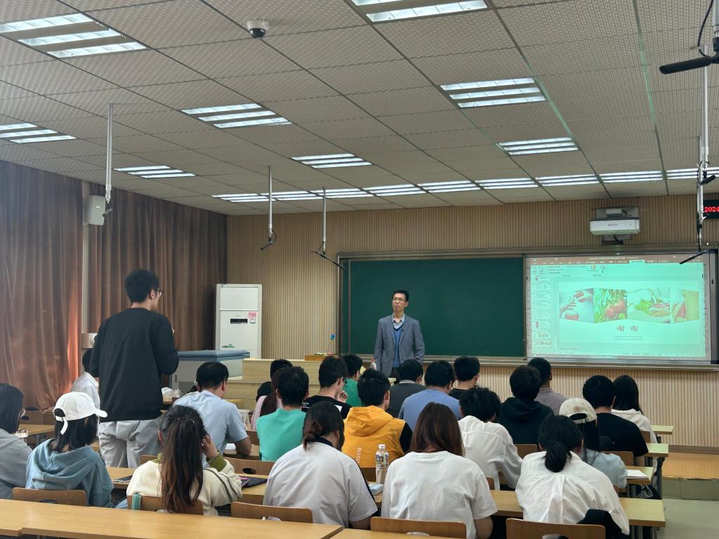 柯少勇研究员带着学生深入探讨了前沿技术对生物农药发展的驱动作用。他介绍了基因工程、机器学习和大数据等研发技术,并详细阐述了RNA生物农药、微生物农药、免疫诱抗等产品路径的创新。柯老师还提到了精准农业手段在生物农药领域的应用,通过微生物组学结合数据检测、电子标签等技术,实现了农药检测、生产渠道和食品安全的全面保障。他还指出我国生物农药发展所面临的问题与挑战,包括新型高效生物农药品种缺乏、应用技术推广不足、研发与产业脱节等。他鼓励学生抓住机遇,勇于创新,寻找突破口,推动生物农药领域的进步。