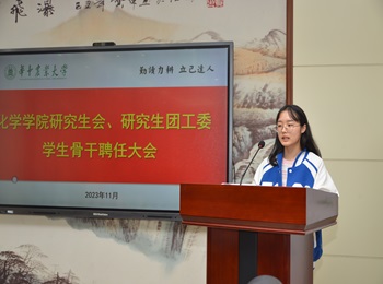 会议伊始,张汝婷宣读了第一届研究生会学生骨干名单,刘畅为受聘学生颁发了聘书。他充分肯定了上一届研究生会的学生骨干工作有思路、有创新、有干劲、有实效。并对新一届研究生会和全体研究生同学提出要求:勇担时代使命,自觉做全面依法治国的坚定拥护者和忠实实践者;践行服务宗旨,努力成为研究生利益的忠实代表者和坚定维护者;明确工作导向,力争成为校园文化的积极促进者和优秀领航者;持续规范建设,努力成为党团班融合的有力推进者和勤勉工作者。
