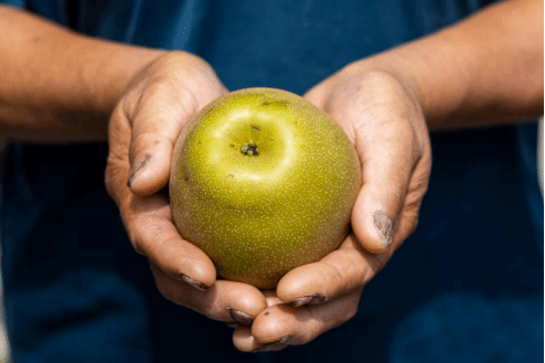 晨曦微露,团队随果农入园拍摄。果农们穿梭梨林中,采摘、搬运、分拣、装箱,成员们记录下他们弯腰拾果的专注、树荫下休憩的笑靥、满筐雪梨前的自豪......这些瞬间汇编成专题摄影集,成为一份温暖的“田野日记”。