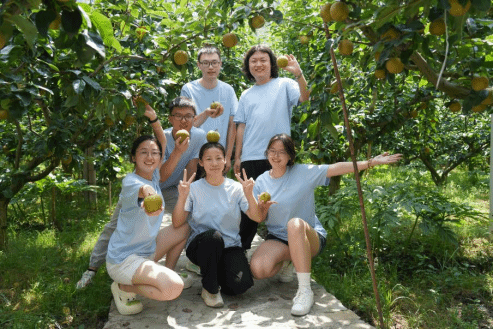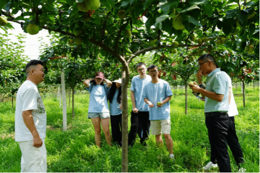 实践团成员在果园中合影(李祥瑞 摄)