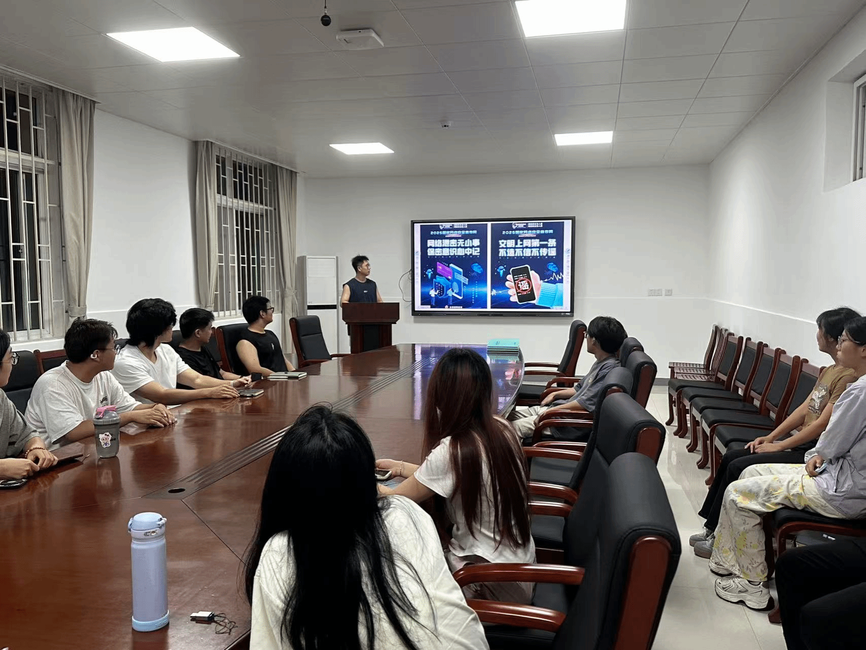 为进一步增强教育实效,课题组还组织全体学生集中观看网络安全警示教育视频,视频中 “个人信息泄露导致的精准诈骗”“网络谣言引发的社会秩序混乱” 等真实案例,让在场同学直观感受到网络安全威胁的隐蔽性与危害性。视频观看结束后,硕士研究生高明惠同学围绕《网络安全法》核心条款、网络信息安全防护实操技巧等内容进行答疑,针对同学们提出的 “如何辨别钓鱼邮件”“科研数据加密存储方法” 等问题,进行了探讨,现场互动氛围浓厚。