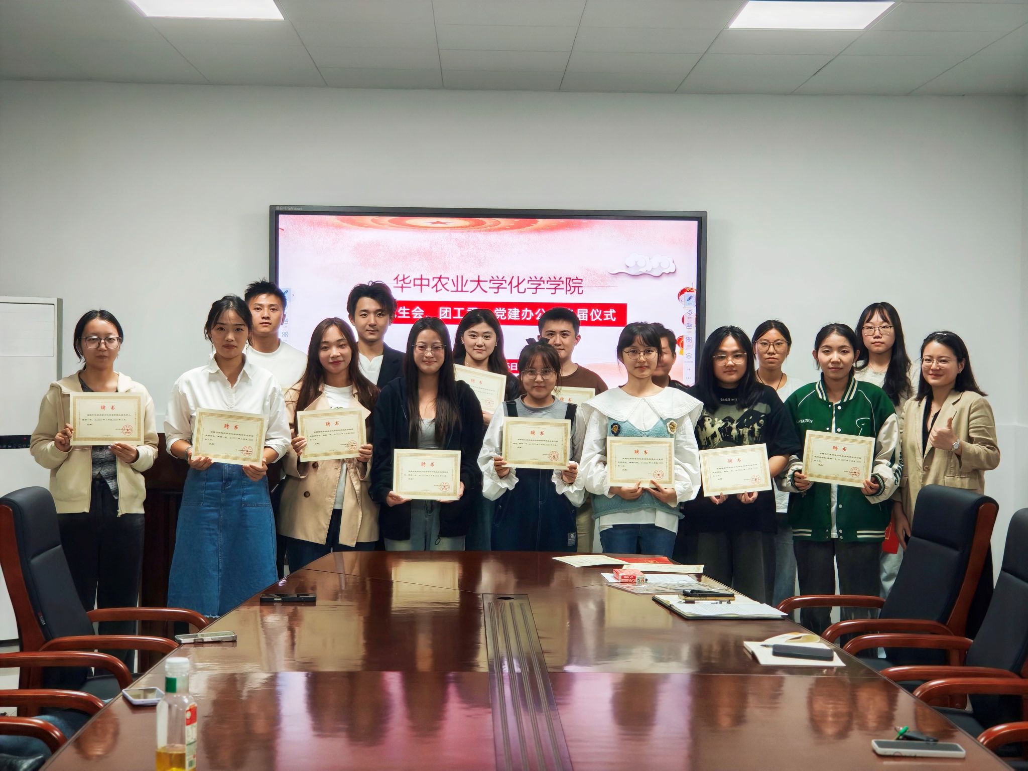 会议伊始,周振东同学宣读了新一届党团学骨干聘任名单,涵盖研会主席团、学术部、文体部、生活保障部、实践创新部、秘书处、宣传部及党建办公室等多个部门。随后,马明钰老师为全体骨干逐一颁发聘书。