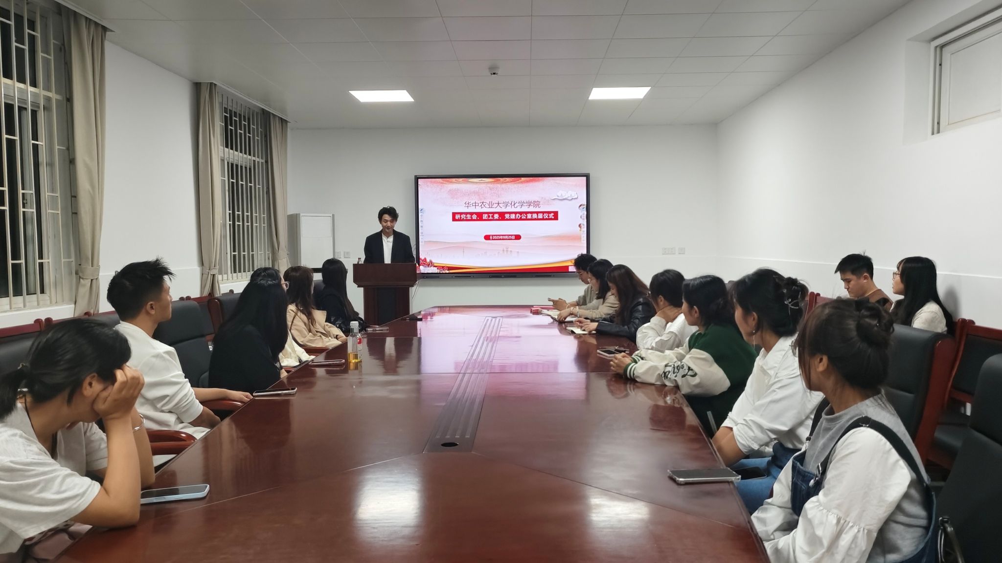 (通讯员:何秋燕)9月25日晚,英国上市3652025-2026届党团学骨干聘任仪式在化学楼A106报告厅举行。研究生辅导员马明钰和新一届党团学全体骨干参加会议,共同见证学生工作承前启后的重要节点,会议由周振东同学主持。