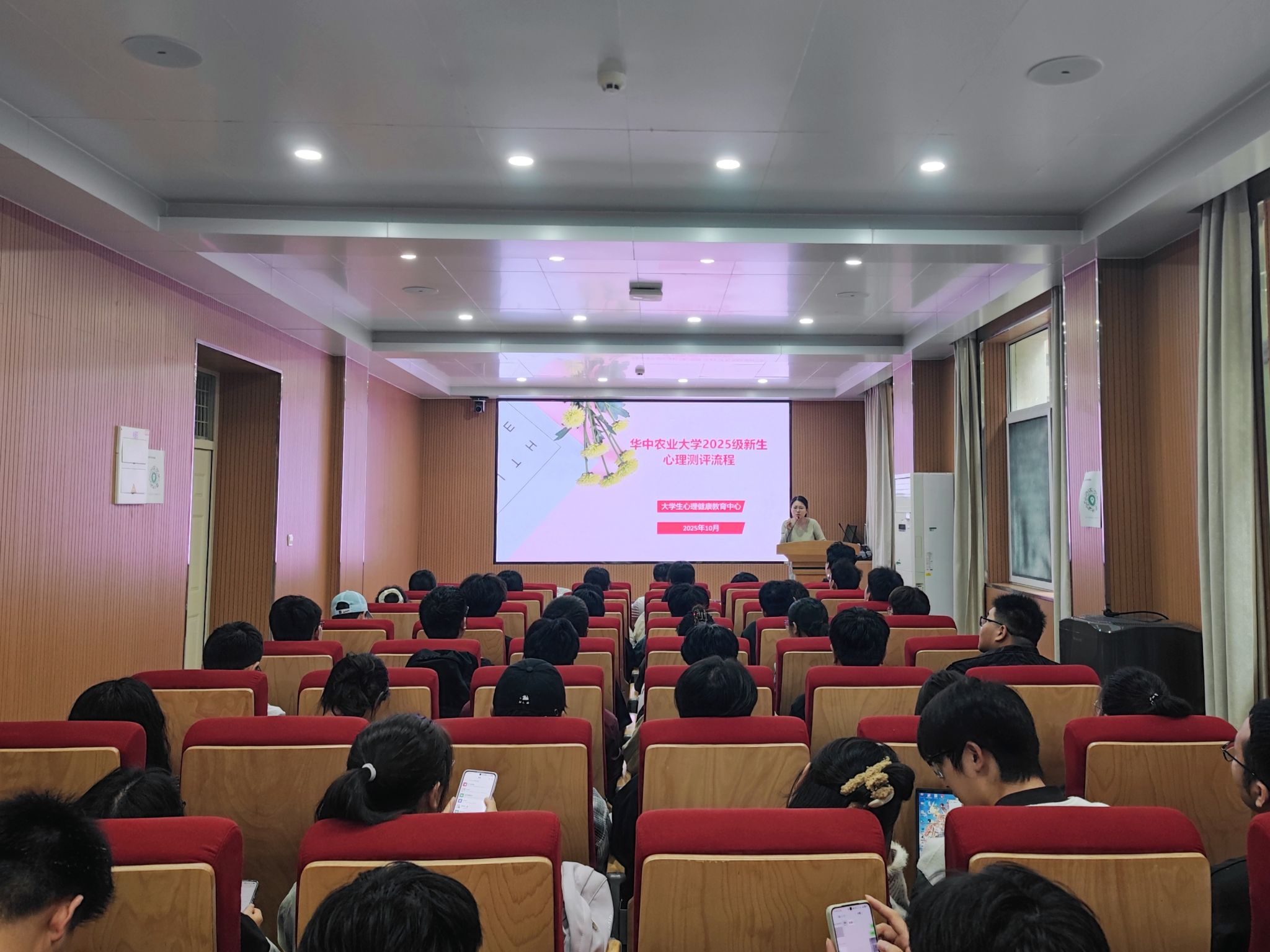 会议伊始,马明钰详细介绍了测评流程,从登录系统的步骤、问卷填写的规范,到提交数据的注意事项,逐一进行清晰讲解。测评采用专业心理健康评估系统,围绕情绪调节能力、压力适应水平、人际交往状态等核心维度设计问卷,旨在客观、全面地捕捉新生心理动态,为心理健康服务提供科学依据。