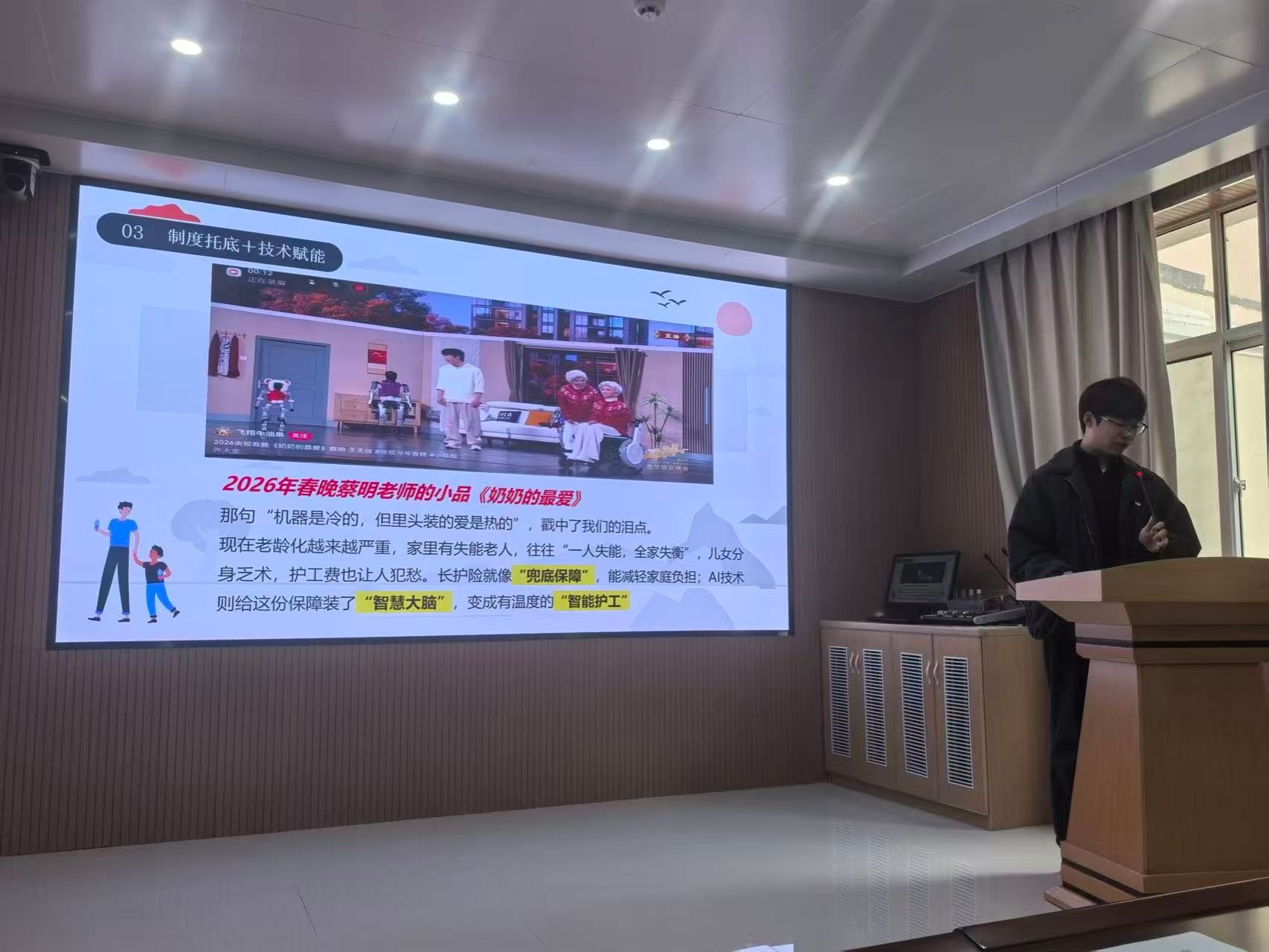 比赛选题紧扣时代热点,内容涵盖2026年全国两会、民生保障、生态环境、科技创新、315晚会、网络热点事件以及冬残奥会等多个领域。各参赛队伍立足现实案例,结合政策背景与社会实际,展开多维度分析与思考。第八组以生态环境为切入点,围绕“法润青山、典护生态”,深入解读绿色发展政策,彰显可持续发展理念;第二组聚焦民生保障,以AI换脸精准诈骗为案例,结合政策与现实问题进行系统分析,体现出青年对社会问题的关注与责任担当;第六组立足科技进步,围绕侵入式脑机接口医疗器械上市展开探讨,呈现科技发展新趋势;第九组关注冬残奥会,通过案例阐释拼搏精神与人文关怀,传递包容向善的时代价值。