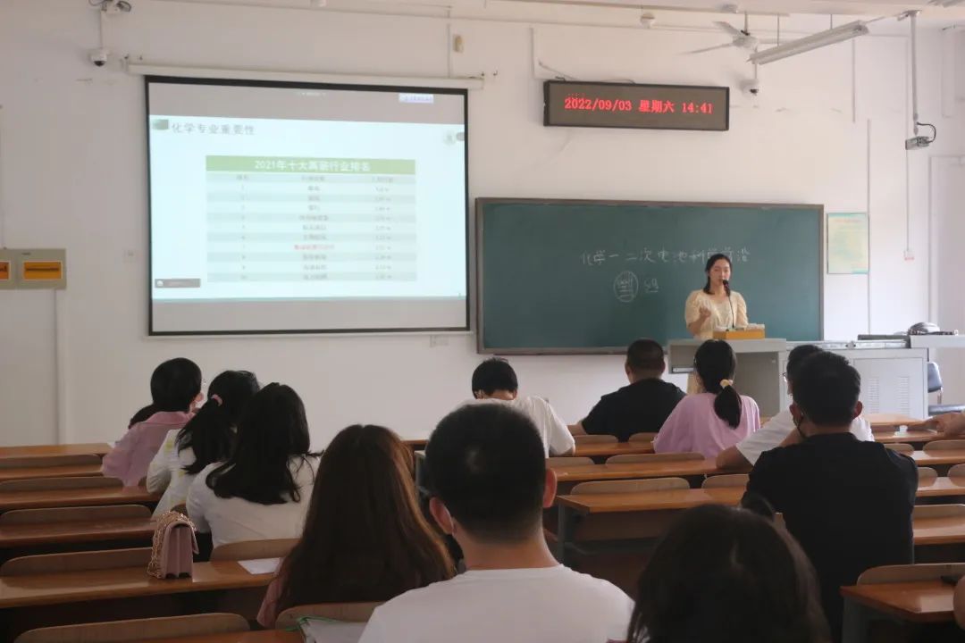 九月三日下午十四时许,2022级新生汇聚于三教的A201和A101教室,听罗艳珠老师讲述有关化学专业的重要之处,以及化学在我们的生活中的运用。会议现场座无虚席,应用化学的新生都全神贯注,会议现场氛围良好。