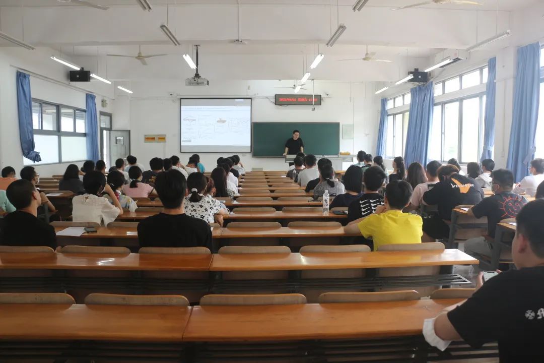 9月3日下午,《学术三部曲》系列(二)探索学术前言活动在三教的几个教室同时进行着,其中坐在三教A202教室参与活动的光电专业新生们,正在认真地听着雷红伟老师与刘宁亮老师的学术介绍。天气并不炎热,同学们听讲时格外认真。