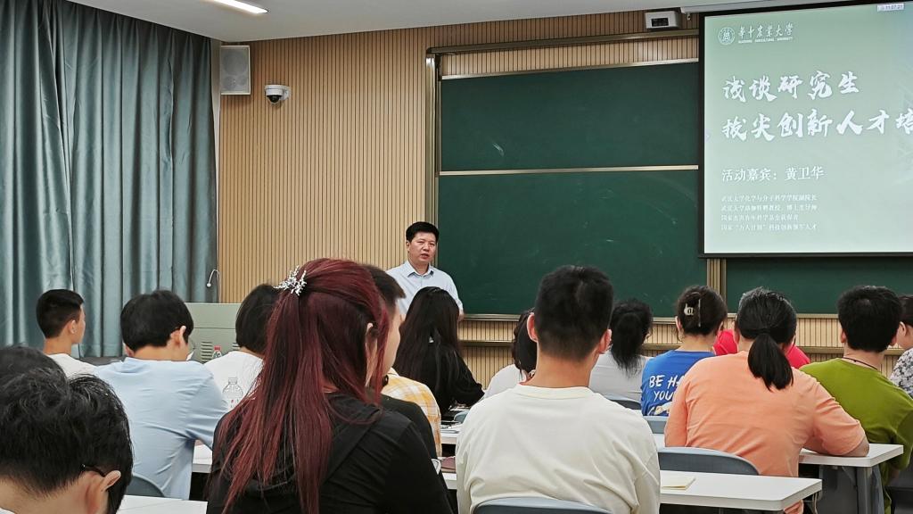 “科学研究的意义是什么?”“怎样才能找到自己的真正所爱?”“怎样成长为一名合格的研究生?”武汉大学化学与分子科学学院黄卫华教授受邀来校与研究生新生们分享交流关于科研、学习、生活的那些事儿。黄卫华结合自己的的科研历程和育人体会,鼓励在场的同学们要先做有德行的人,再做有意义的学问,要主动将自己的研究方向与国家战略需求紧密结合,以基础学科为基石,找到真正的科学问题,在探索求真找到人生坐标。