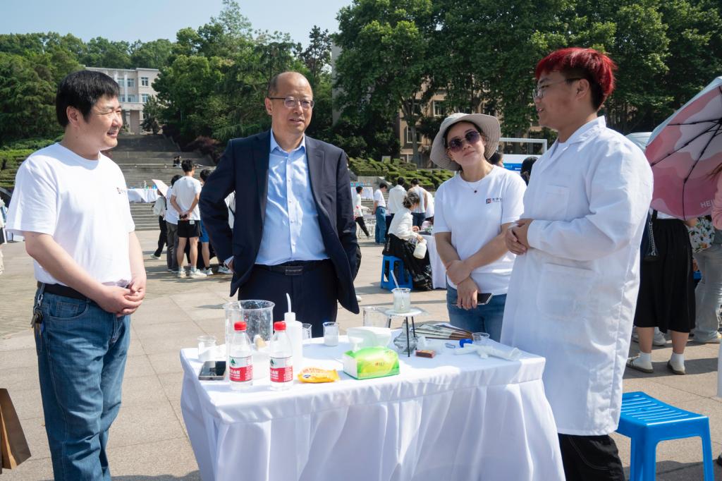 (通讯员:岳红 苏雨婷)4月27日上午,我校2024年化学文化节在狮子山广场举行,化学实验创新设计项目、化学赋能农业实验创新项目、“螺旋”艺术装置、化学文创作品、化学文化展览、化学互动实验等一系列充满科学精神与艺术气息的活动吸引了500余位师生参与体验。校长李召虎、校党委副书记王从严先后来到现场,与师生一起体验交流化学的神奇与魅力。
