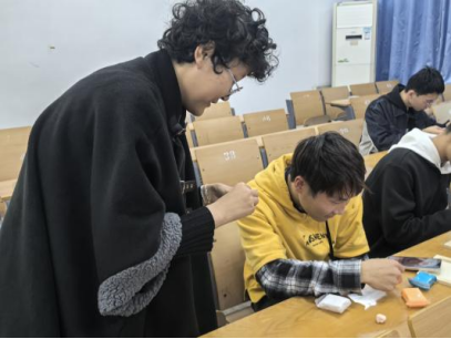 制作过程中,教室里充满了热烈的讨论声。学生们积极交流制作细节,思维的火花不断碰撞。遇到困难时,发起人团队成员迅速行动,及时给予专业指导与帮助。大家充分发挥想象力,每一块黏土在学生们手中都仿佛被赋予了生命,或捏或锤,原本单调的黏土逐渐变成一幅幅独一无二、充满创意的作品。在这个寒风凛冽的冬日周末,学生们沉浸在黏土创作中,心也逐渐沉静下来,焦虑情绪随着创作的推进悄然释放,这无疑是一场心灵的治愈之行。
