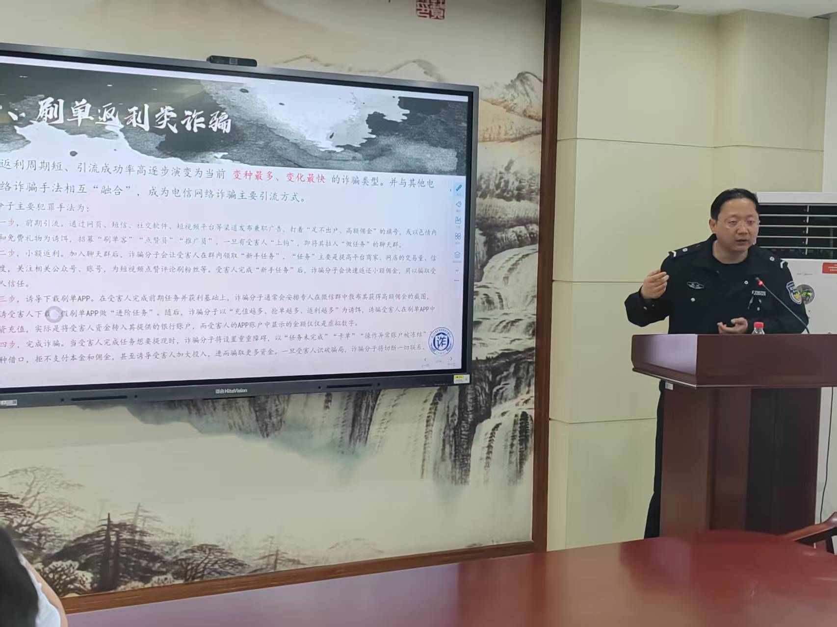 培训过程中,郭警官凭借丰富的实战经验,结合大量真实案例,深入剖析了诈骗分子的惯用套路,并详细传授了实用的防范技巧。他着重强调,尽管诈骗手段花样百出,但其核心目的始终是骗取钱财。同学们唯有熟悉诈骗套路,掌握防范技能,才能有效规避财产损失。