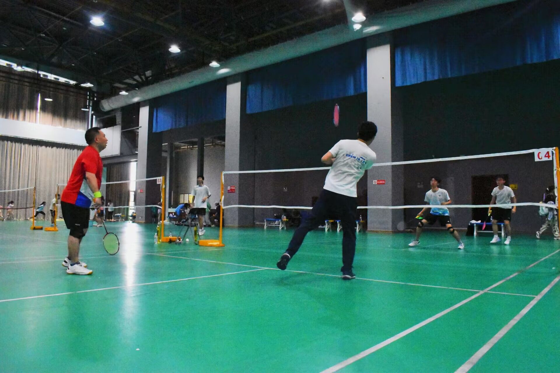 8点整,比赛正式拉开帷幕。赛场上,同学们斗志昂扬,应化2304班郑琳萱的表现十分精彩,她时而网前截击,时而大力扣杀。精彩的对拉回合引得观众阵阵欢呼。选手们都在球场上挥洒汗水,他们精湛的球技和顽强的拼搏精神,充分展现了同学们的青春活力与蓬勃朝气。