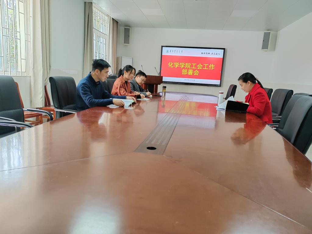 (通讯员:张 涛)3月20日下午,学院在化学楼A106会议室召开2024年学院工会工作部署会。工会主席曹敏惠主持会议并讲话,全体工会委员参加会议。