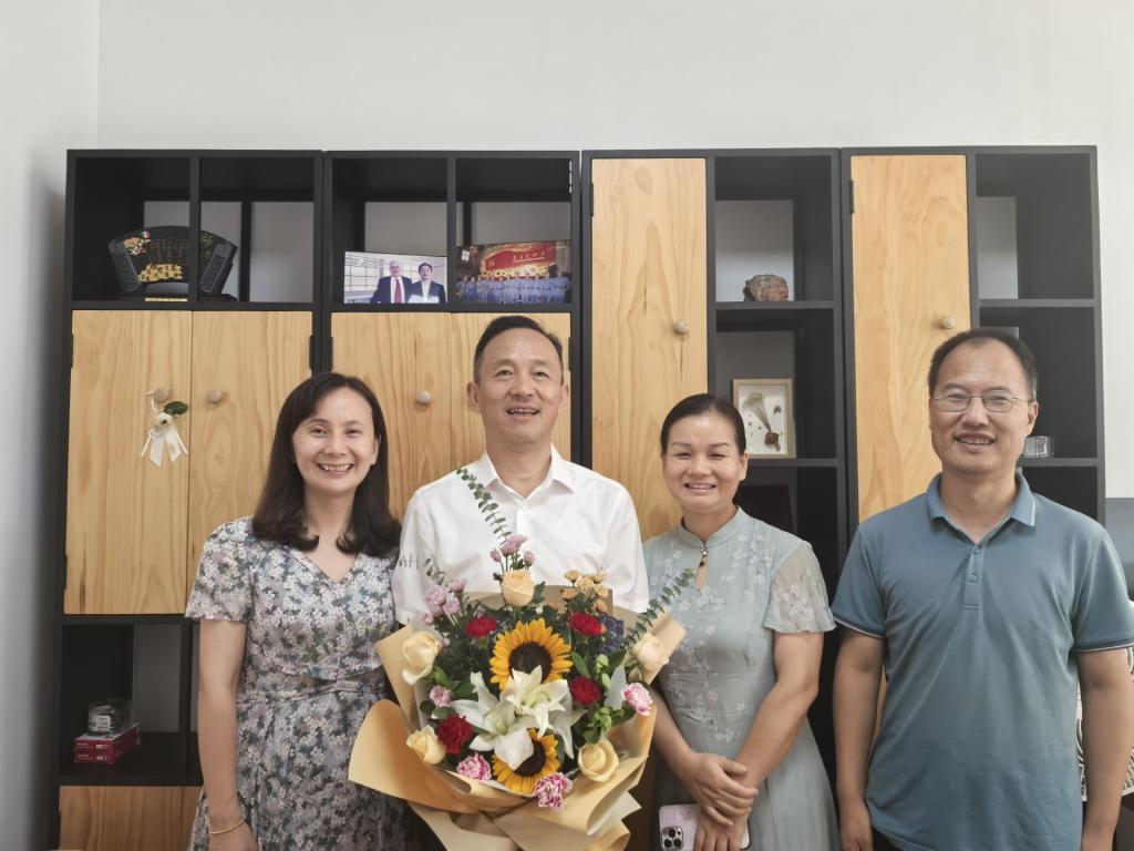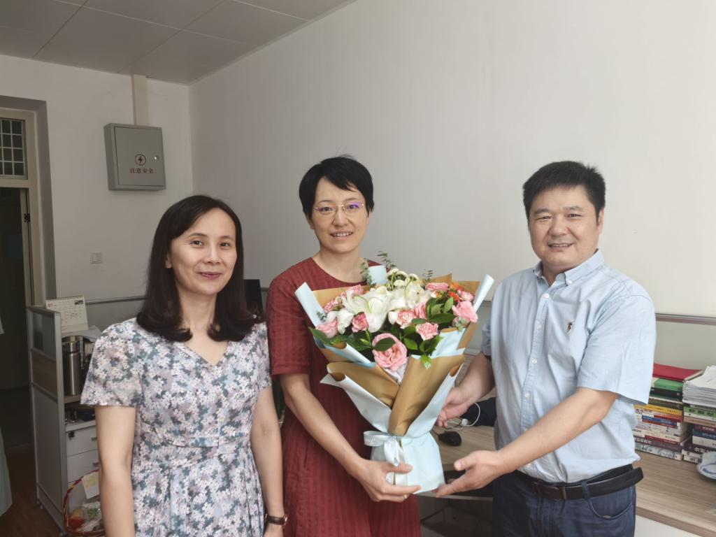 9月10上午9:30学院党委书记涂俊才、院长曹菲菲、副院长、工会主席曹敏惠及相关老师看望陈浩、陈璐两位老师,向他们献上一束鲜花,道一声“节日快乐”,通过他们向院教师送上节日的问候和祝福。