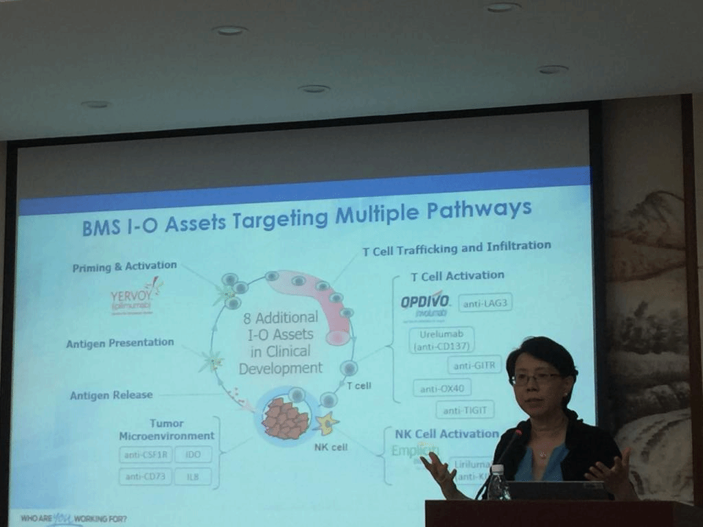 随后,张笠陶博士具体讲述了她所领导的团队在癌症治疗药物研发方面所做的研究。她谈到药物研发部门需要考虑的四个关键问题,分别为确定靶点、寻找药物、建立体外模型和药物筛选与优化,指出百时美施贵宝公司最新研发并上市的肿瘤免疫药物可通过激活T细胞实现自身免疫系统的提高,从而帮助检测和攻击癌细胞,显著提高患者的存活率。她介绍目前有一些肿瘤无法被免疫细胞有效识别,其中的作用机制尚不明确,百时美施贵宝公司基于此与哈佛大学合作开发3D细胞打印机,实现三维肿瘤细胞的体外培养。他们希望通过对肿瘤细胞表面微环境的具体分析来了解免疫细胞对肿瘤细胞的具体作用机制,从而实现肿瘤免疫疗法更好的发展。她最后总结到,癌症治疗是一个发展迅速、充满挑战、需要多学科知识交叉融合的领域,希望更多的老师和同学们能够参与到这个研究领域中,促进癌症治疗领域更快发展。