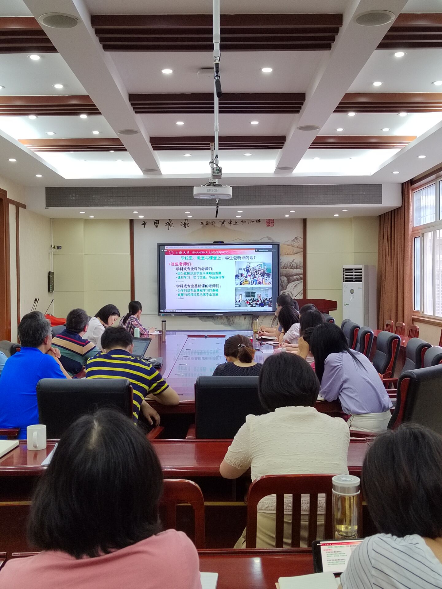 副院长曹敏惠总结说:“叶老师的报告不仅有高屋建瓴的理论,也有落地的实际操作案例,非常具有指导性。叶老师对教育的执着和热爱值得每一个人学习,言传身教,方能立德树人。”随后,与会人员就校级与院级课程思政项目建设,进行了深入地研讨,大家纷纷表示要把今天学习到好的方法转化到课程建设和平时教学中。