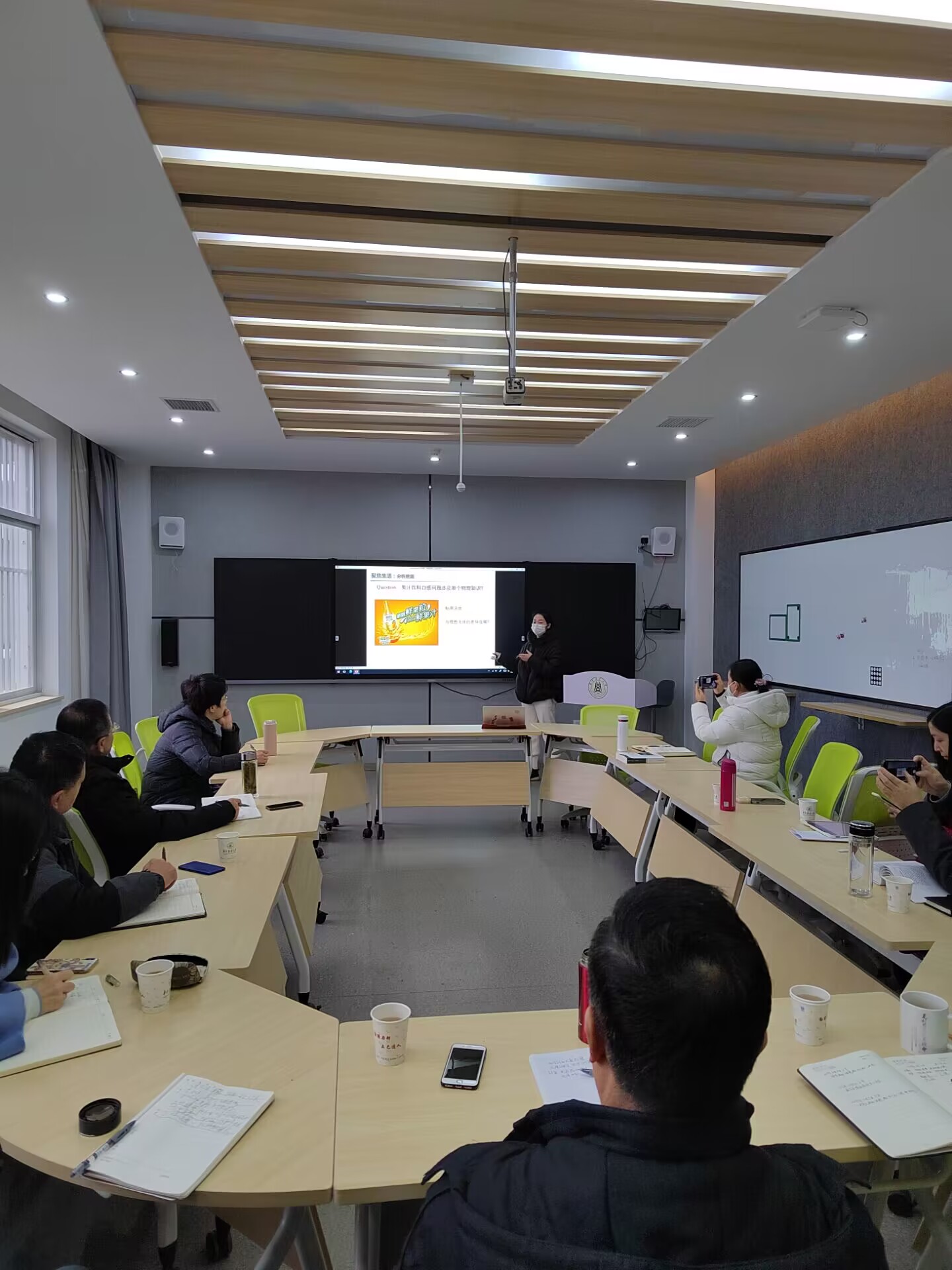 参赛老师们依次从课程目标、学情分析、教学重难点、创新举措等方面,对参赛课程教学设计进行了分享。评委们从教学内容、教学方法、教学组织、教学效果等4个方面对本次磨课进行了点评,大家一致认为,参赛老师们在教学活动中课程备课充分,教学内容重难点突出,条理清楚,内容循序渐进;教学时间安排合理,板书清晰,课堂应变能力强,能够熟练运用多媒体,注重师生互动,教学效果好。