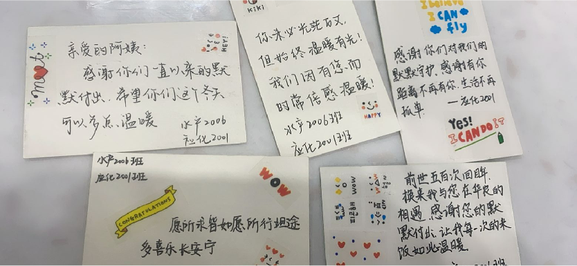 通过给食堂阿姨们送暖宝宝和感谢明信片的形式增加同学们对食堂阿姨工作的了解,知道食物的来之不易。这个简单的行为可以让同学们学会珍惜、感恩、回馈生活中那些看似平凡实则不平凡的工作者。