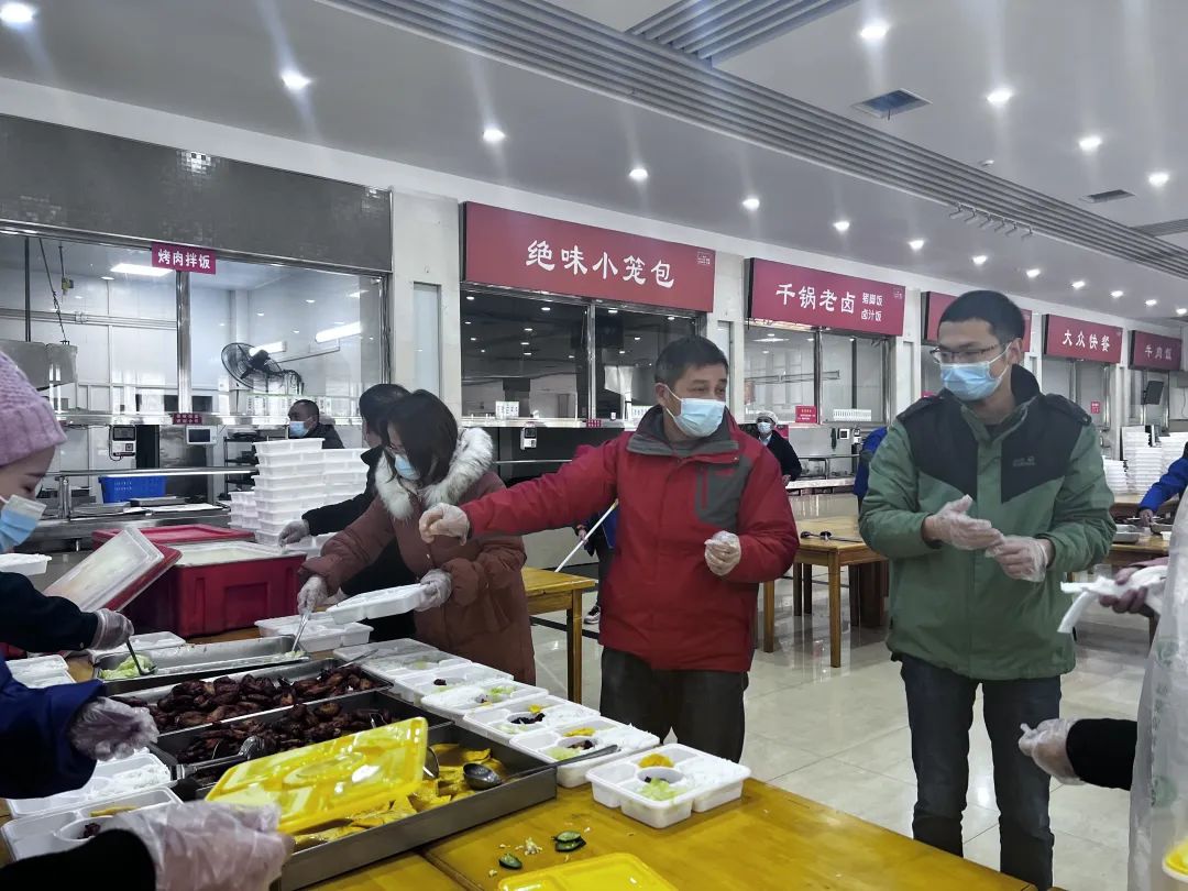 在学校疫情爆发的同时,寒潮也来到了武汉。为了保证大家早上能早早的吃到饭菜,开始一天学习。早上天还未亮时,学院领导班子成员、班主任、楼栋负责的辅导员和志愿者们就已经早早地起了床。