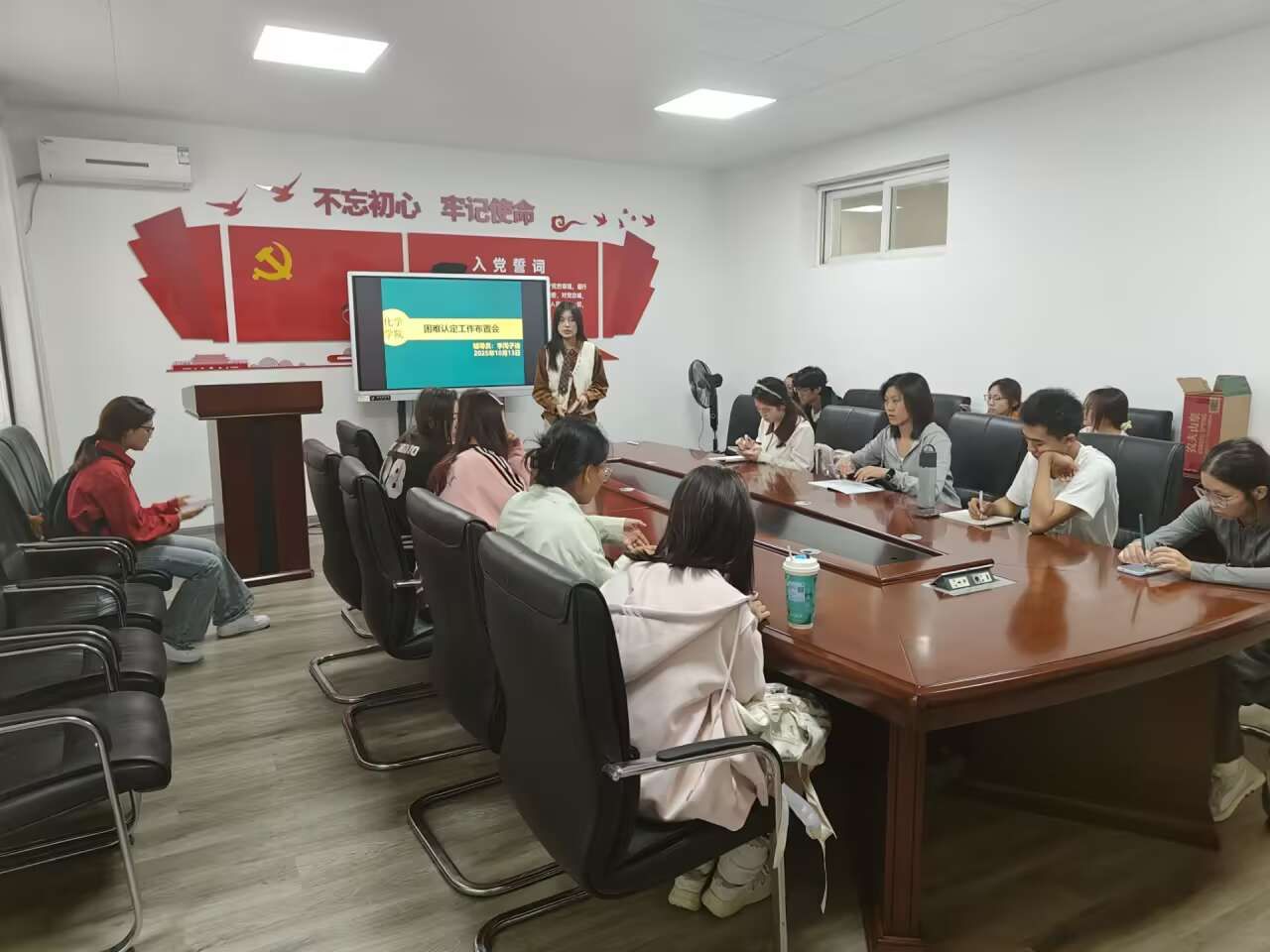 (通讯员:李周子迪 张香玉)10月13日中午,英国上市365于化学楼 A104 会议室召开 2025 级新生资助政策讲解暨家庭经济困难认定工作部署会。会议由辅导员李周子迪主持,2025级英国上市365全体班团干部参会。