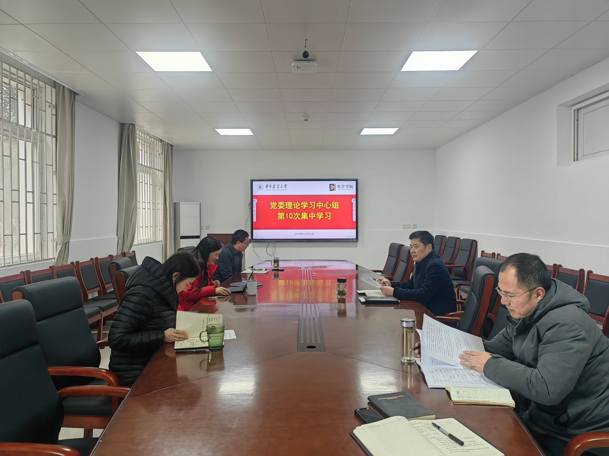(通讯员:皓月)12月22日下午,学院党委理论学习中心组在化学楼A106会议室开展2025年第10次学习研讨,学院党委理论学习中心组成员参加学习。学习活动由学院党委书记涂俊才主持。