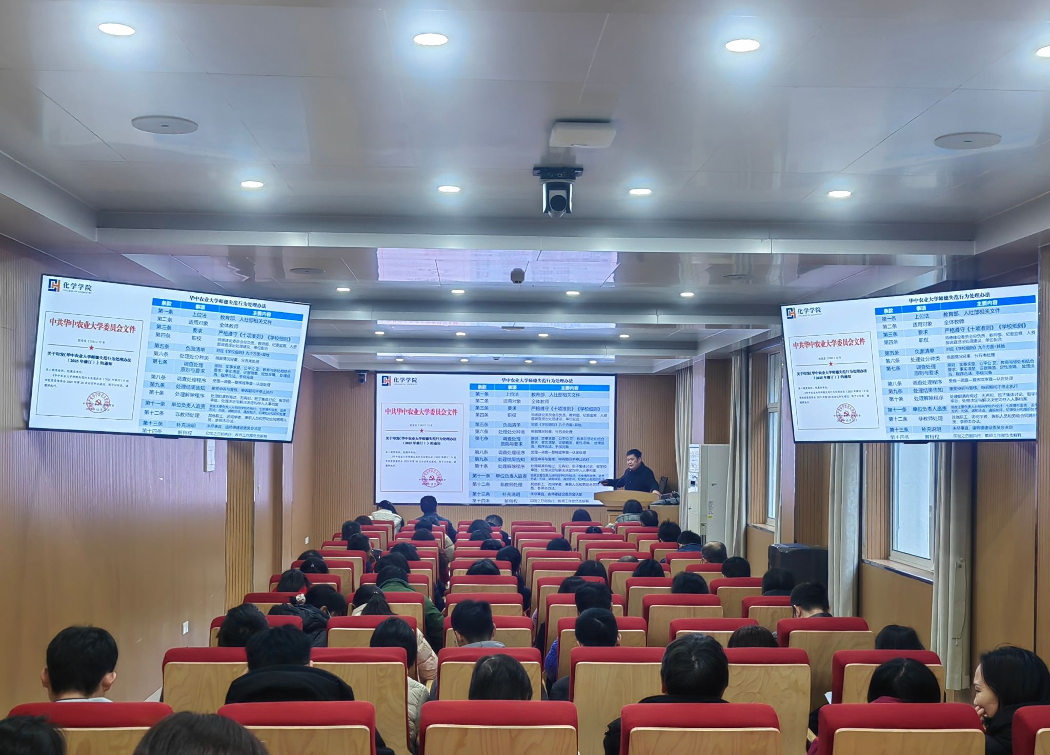 (通讯员:汪献芳)12月25日下午,英国上市365在化学楼102报告厅开展“恪守师德规范,弘扬高尚师德”专题学习,系统学习学校师德师风建设系列制度文件,全体教职工参加学习活动,会议由院党委书记涂俊才主持。