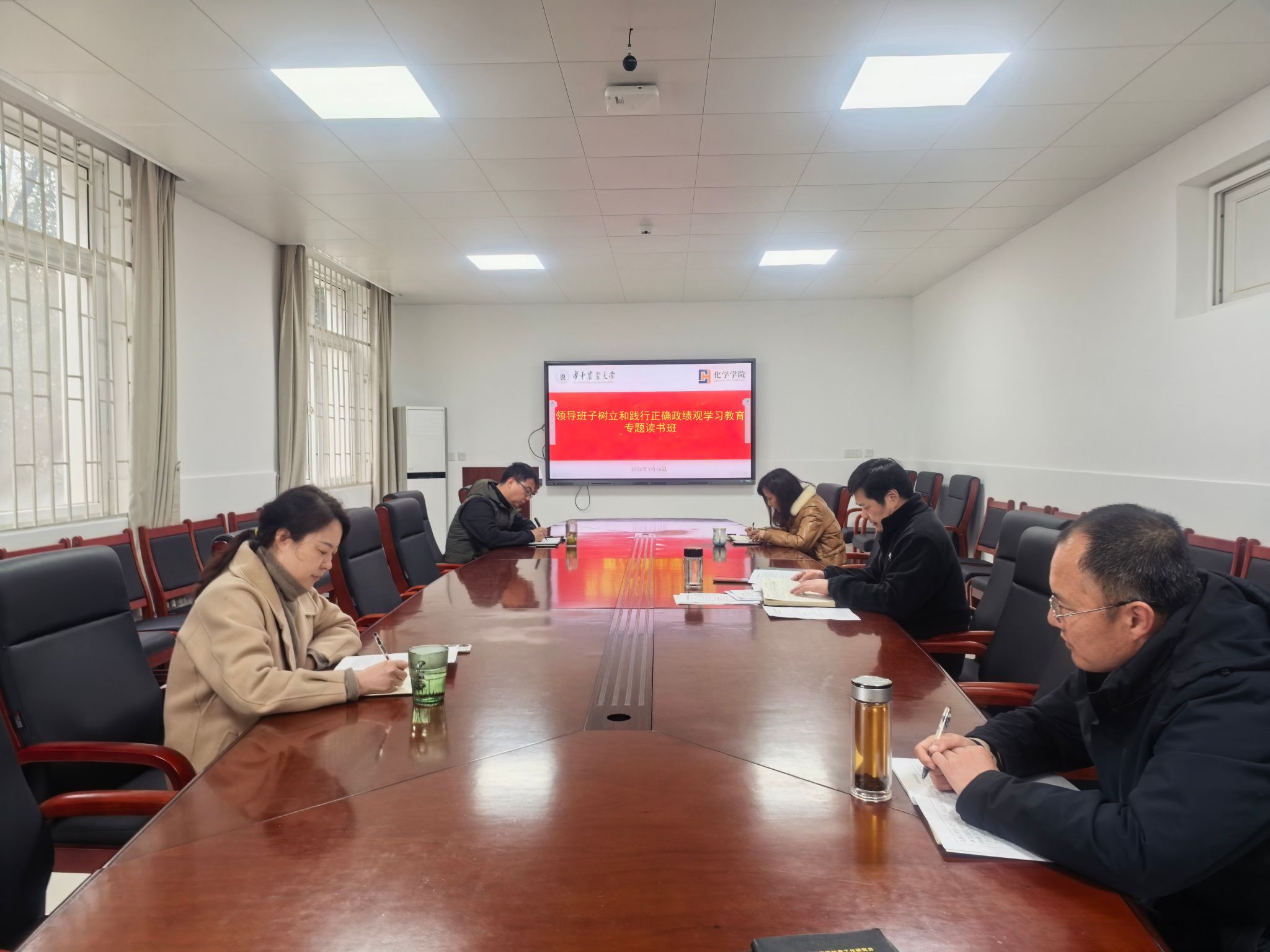 (通讯员:皓月)3月16日下午,学院领导班子树立和践行正确政绩观学习教育专题读书班在化学楼A106会议室举行开班式,学院党委书记涂俊才主持会议,学院领导班子全体成员、教工党支部书记、学院党委理论学习中心组成员参加会议。