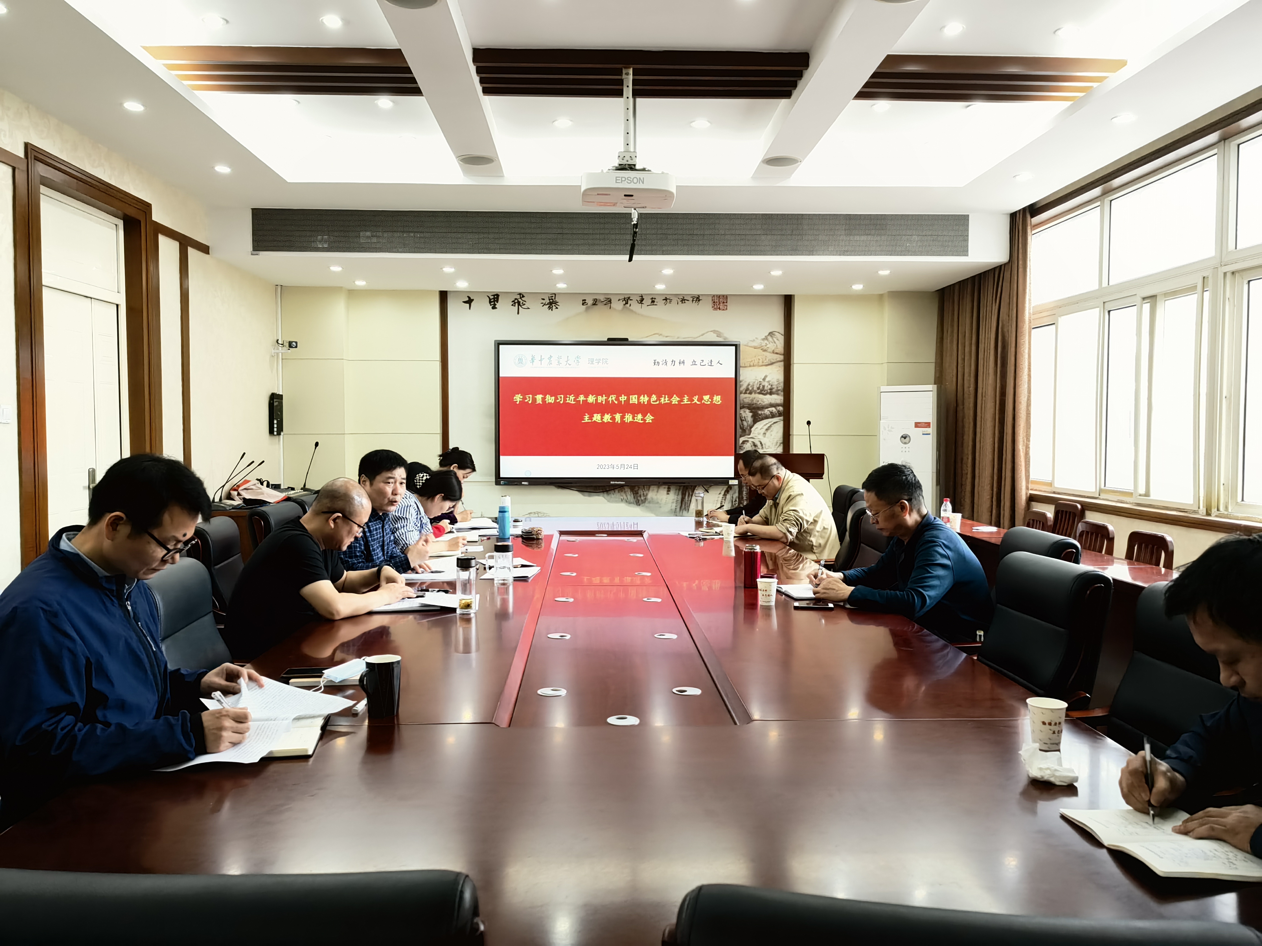 (通讯员:皓月)5月24日,理学院在逸夫楼B212会议室召开学习贯彻习近平新时代中国特色社会主义思想主题教育推进会,会议传达了学校主题教育推进会精神,对学院进一步推进主题教育进行再动员再部署。学院领导班子成员、教师党支部书记参加会议。会议由学院党委书记涂俊才主持。