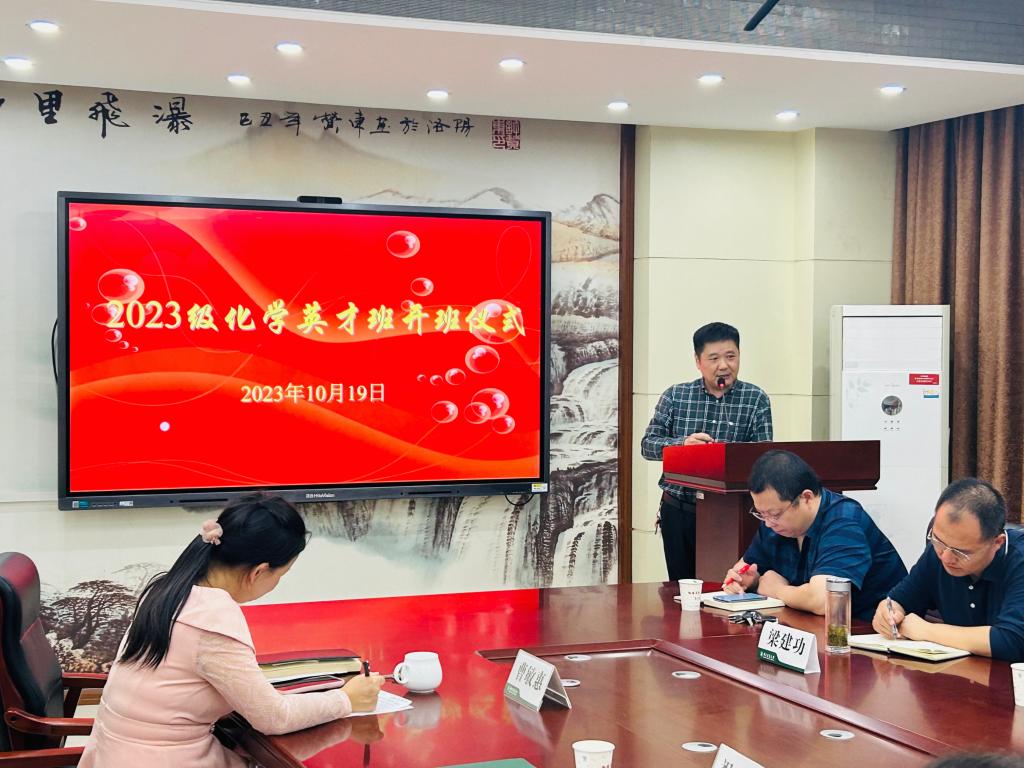 (通讯员 廖英飞)10月19日下午,英国上市3652023级“化学英才班”开班仪式在逸夫楼二楼会议室举行。学院党政班子成员、化学系班子成员、新生班主任及英才班班主任、教务秘书、2023级“化学英才班”全体学生参加仪式并展开交流。开班仪式由副院长曹敏惠主持。