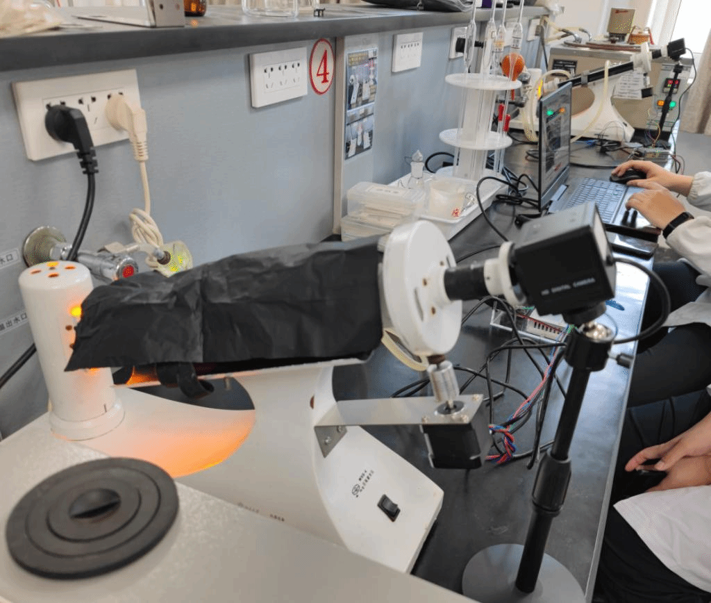 在普通及分析化学实验室,有一组本科生正在组队进行实验创新改进。该团队只有3名学生,其成员参考的书籍除了分析化学之外,还有大量的编程、模拟及数字电路、人工智能、机器人设计控制等方向的教材。据了解,该团队正在做的是将AI技术融入到旋光度测定的实验中,利用工业摄像头、小型数字处理器等,实现智能AI旋光度测定的功能。这样的团队非常注重将新的理念和技术融入到传统实验中,同时强调DIY的动手能力,对团队成员创新性思维和执行力也是一个非常好的锻炼。