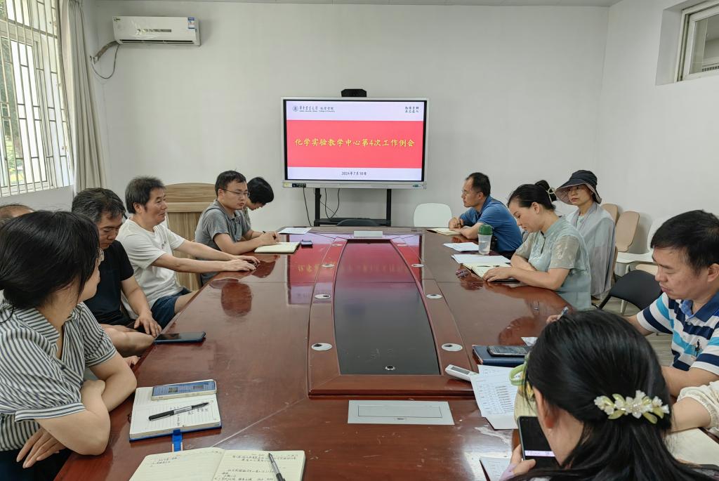 (通讯员:杨晨茹)7月10日下午,化学实验教学中心在化学楼A104会议室召开第4次工作例会。学院副院长、中心主任曹敏惠教授、化学系主任梁建功教授、中心副主任石炜副教授、王嘉讯副教授,以及全体实验技术人员参加会议。