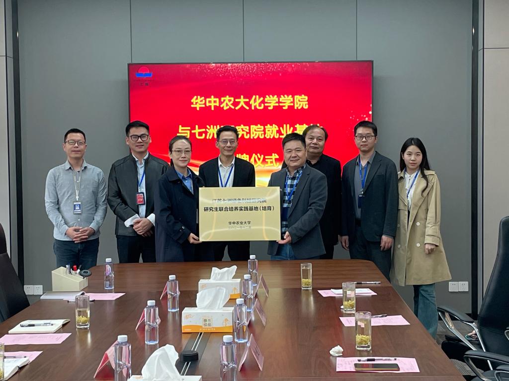 11月13日上午,涂俊才一行来到江苏七洲绿色科技研究院,举行“研究生联合培养实践基地”授牌仪式并座谈交流。江苏七洲集团技术总监安静,七洲集团绿色科技研究院行政院长陶亚春、研发部部长张虎等参加活动。