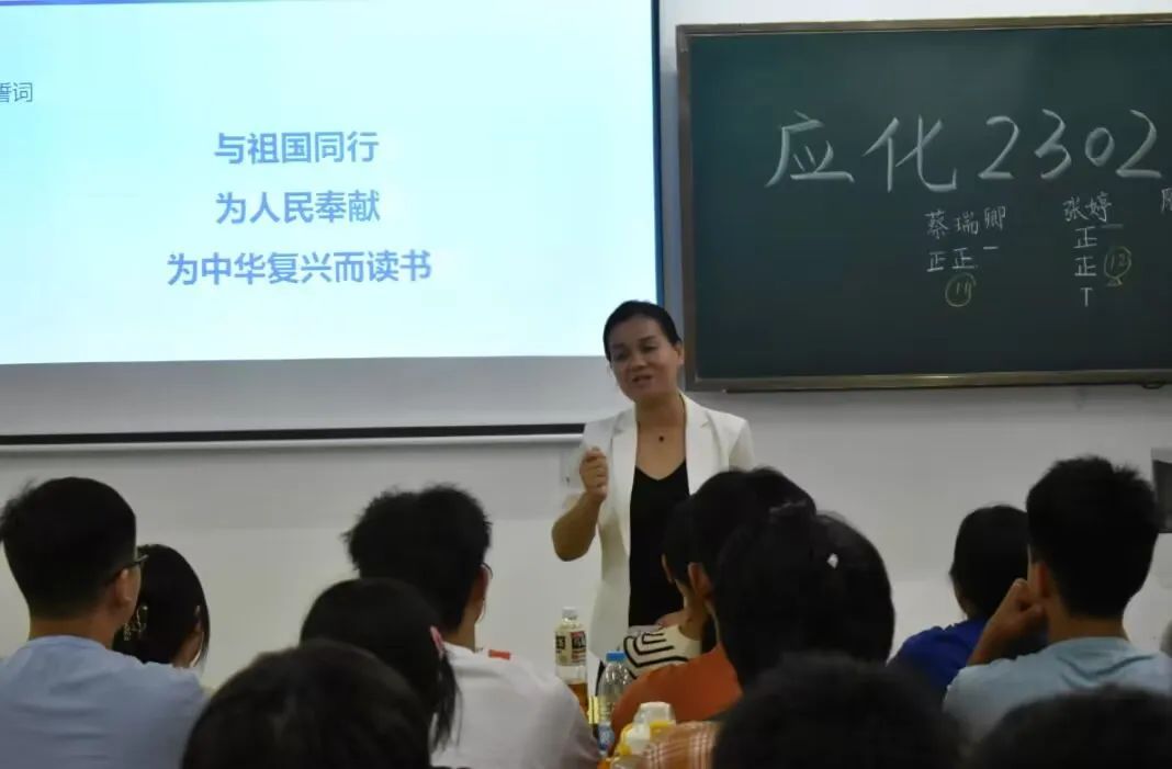 随后院校领导们又分别走入了应化2303班、应化2302班和应化2301班。曹敏惠副院长与同学们进行了友好交流,她希望同学们在大学中不仅要学习好,也要生活好。她提醒同学们要注重个人体质的提升,多运动、多锻炼,并且邀请同学们和她一起参与运动。党委副书记祝鑫向新生们分享了三个关键词:忘记、改变和卓越。祝书记解释道:“忘记是希望大家在进入大学后把它当做一个新的开始,以谦虚的态度面对新事物。而改变最好的时间是现在,希望大家能够珍惜大学的机会提升自己。最后的卓越将是同学们大学四年的主旋律,发挥自己最大的潜能为自己、他人及社会创造价值。”