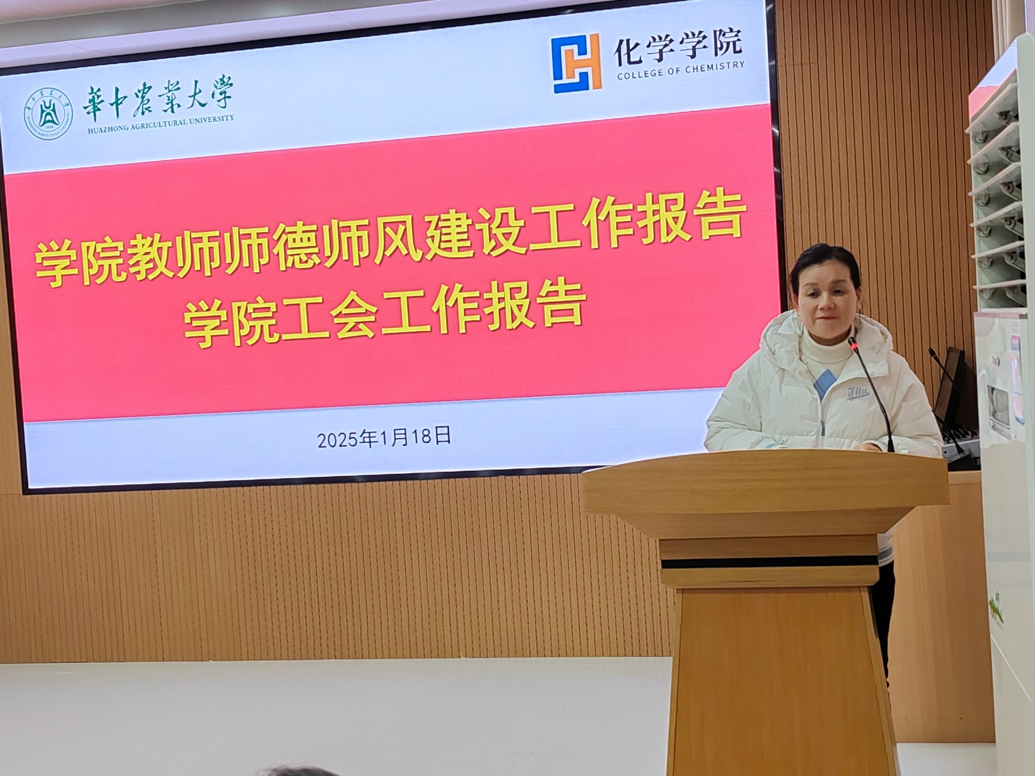 学院工会主席曹敏惠就2024年度工会工作报告及师德师风建设工作报告进行了详细的阐述。她通过生动的案例和具体的数据,充分展示了工会在维护教职工权益、丰富教职工文化生活等方面所做的努力和取得的成效,同时也提出了进一步加强师德师风建设的具体举措和目标。
