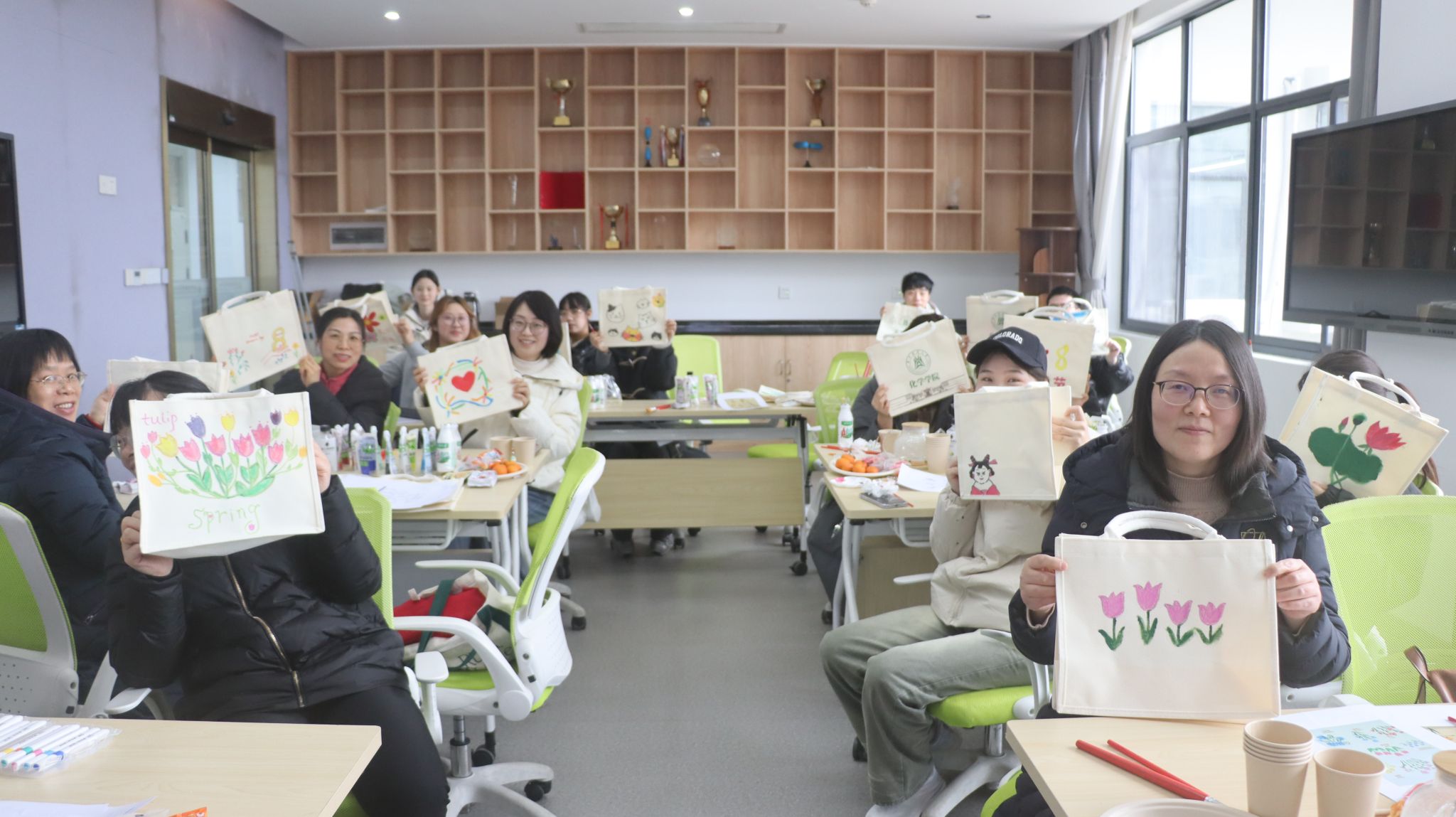 活动接近尾声,参与者们手捧自己亲手绘制的专属帆布包,脸上洋溢着满足与自豪的笑容,一同合影留念,将这美好的瞬间永久定格。紧接着,众人移步至门外墙边,庄重地撕下那些贴在女性身上的刻板标签,仿佛在宣告对陈旧观念的摒弃。随后,大家领取象征美好的玫瑰花,再次定格画面,为本次活动画上了圆满而又意义非凡的句号。