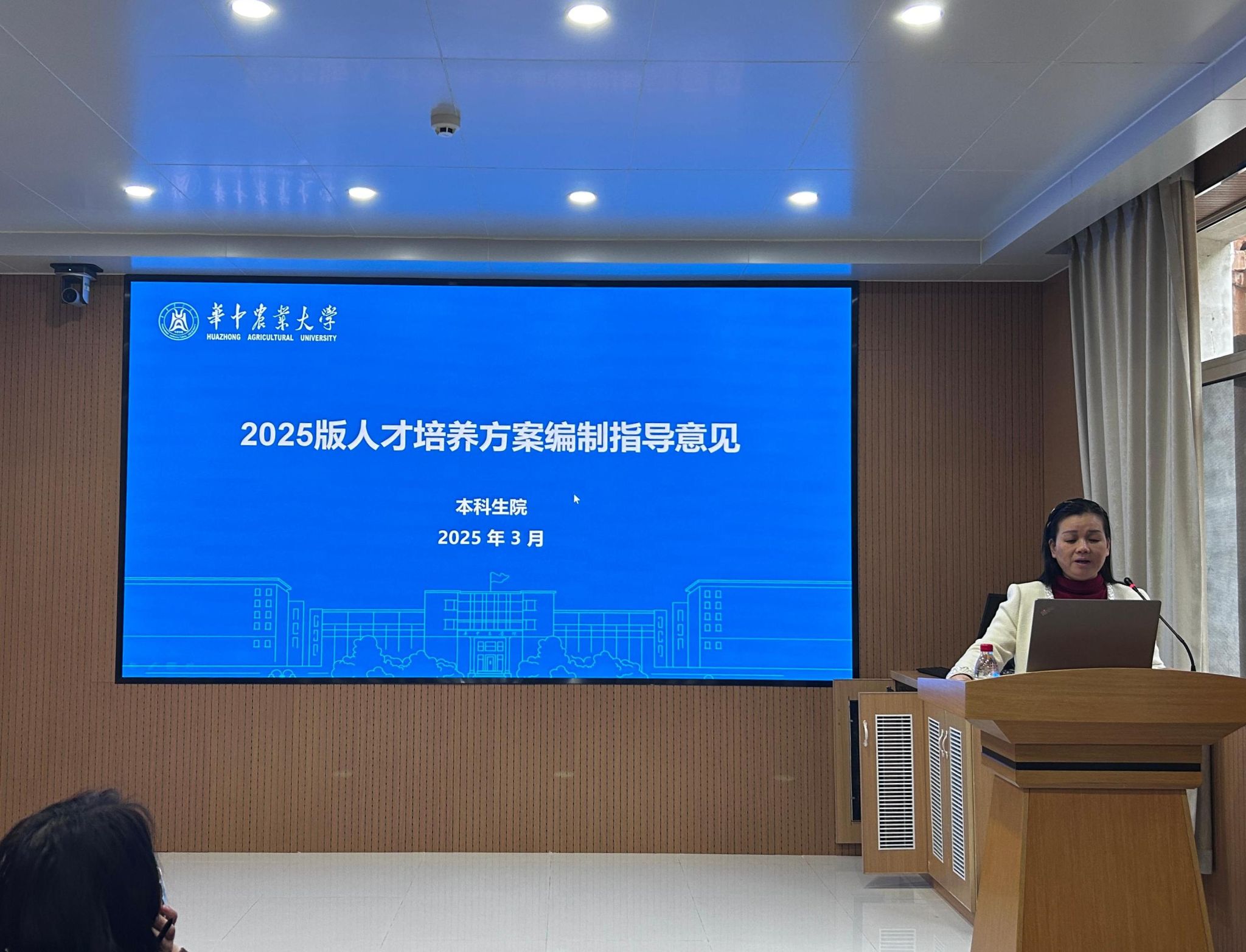 曹敏惠围绕本科教育教学审核评估评建工作应知应会开展学习培训。在人才培养方案修订动员会上,曹敏惠指出,本轮人才培养方案修订聚焦现有方案中五育融通体系化设计不足、培养模式单一、课程碎片化现象严重、实践教学弱化、数字化转型缓慢等问题。学院制定发布了《2025 版人才培养方案编制指导意见》,要推进专业教育向通专融合教育转变,知识传授向价值塑造、能力培养、知识创新转变,通用性人才向个性化人才培养转变,大力促进数智融创与学科交叉,科教融汇与教产融合。要着力于精准确立人才培养目标、系统设计通识与公共基础课程、科学设置大类平台课程、整合强化专业课程、融合开设学科交叉课程、系统设计实践教学环节等。学院对学分要求与课程设置进行了详细规划,明确了理论课、实验课、设计课、体育课的学分计算方式,以及不同专业总学分的上限。实践学分占比不低于总学分的 20%-30%,确保学生实践能力的培养。本轮人才培养方案的课程涵盖思想政治理论课、通识与基础教育、专业教育、多样选择和实践教育五大模块,并课程目标与毕业要求的紧密对接,提升本科人才培养质量。