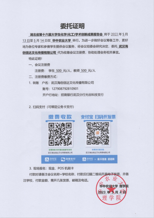 湖北省第十六届大学生化学(化工)学术创新成果报告会通知(第二轮)
