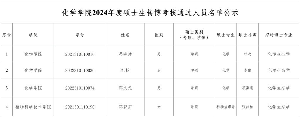 英国上市3652024年度硕士生转博考核通过人员名单公示