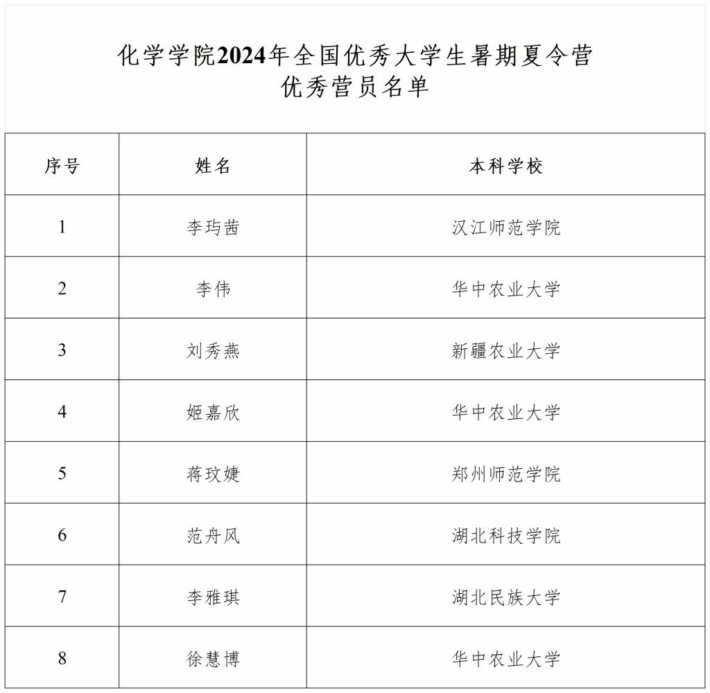 经个人展示、综合考核,共有8位同学被评为英国上市3652024年全国优秀大学生暑期夏令营“优秀营员”。现将名单公布如下: