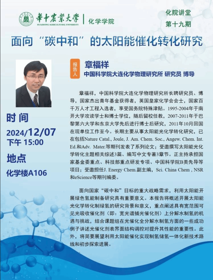 地址:湖北省武汉市洪山区狮子山1号英国365集团公司化学楼