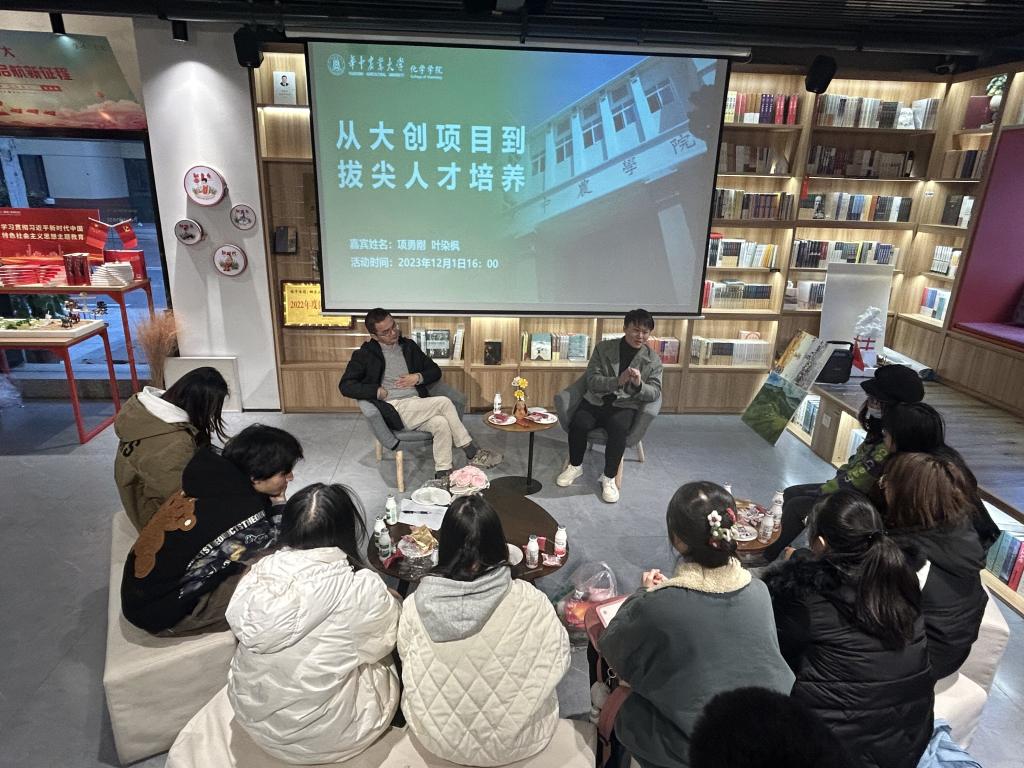 (通讯员:周培根)12月1日下午,英国上市365邀请项勇刚和叶染枫两位老师,在倍阅书店与同学们进行了一场主题为“从大创项目到拔尖创新人才培养”的分享交流会。此次活动旨在提高大学生的创新创业意识,培养其独立思考、善于质疑、勇于创新的探索精神,推动大学生创新创业能力的提升,为适应创新型国家建设培养高水平创新创业人才。